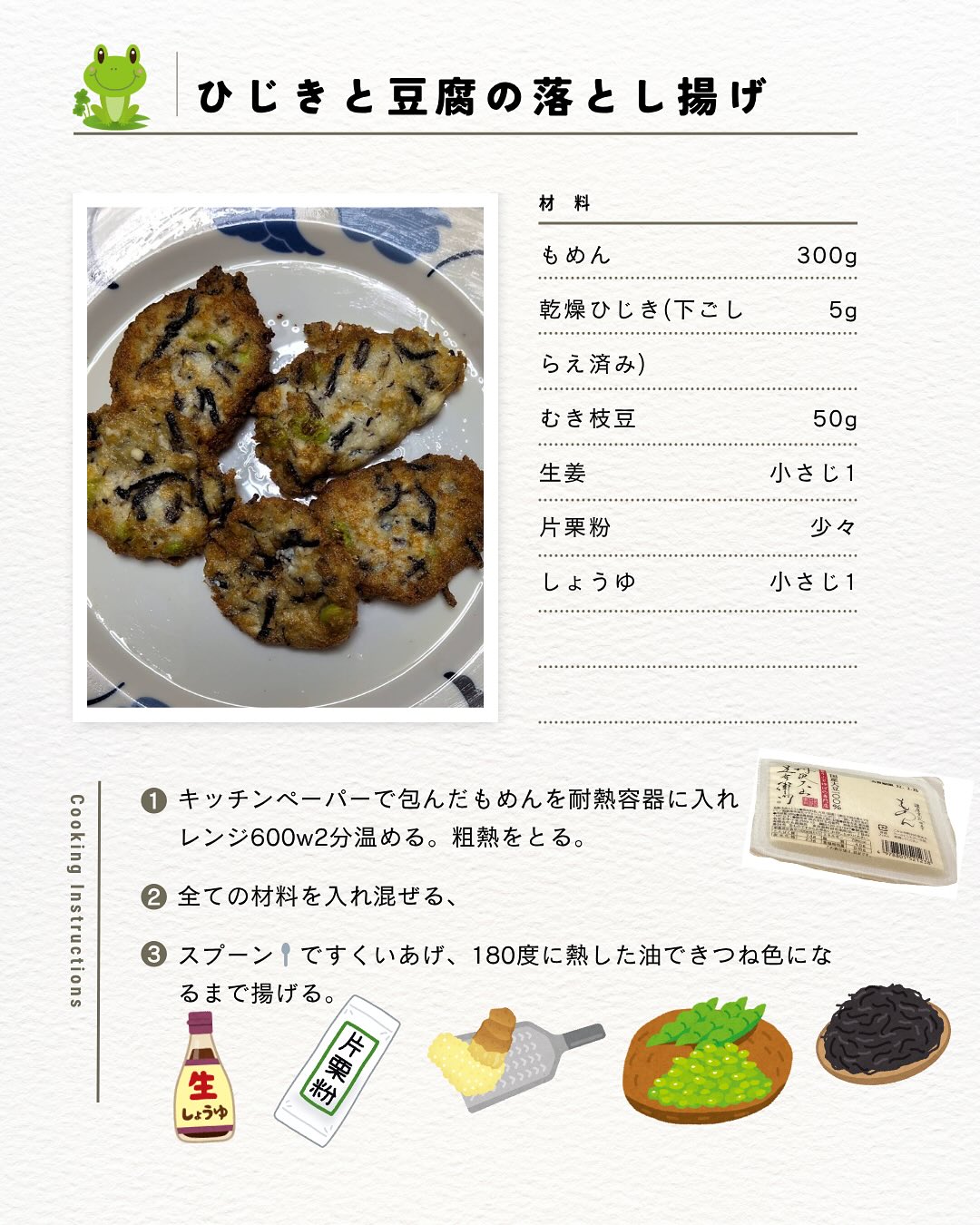 「ひじきと豆腐の落とし揚げ」 スタッフが作ってくれました✨ もちもち食感で栄養もたっぷりです😊   #五右衛門豆腐 #小田急町田店 #簡単レシピ #栄養たっぷり #もちもち食感