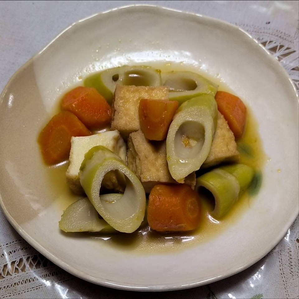 今年も九州屋さんで、四方竹始まりましたー! 今年の四方竹は太くて大きめ! おあげや生揚げとの相性もピッタリです✨ ③④ 九州屋さんで、五右衛門とコラボ試食販売もやってます♪ スタッフ作ってくれました♪ ①四方竹と絹生揚げの煮物  めんつゆを使って簡単煮物! ②四方竹とおあげの炒め物    ごま油で炒めて、昆布だし醤油・味噌で味付け!     四方竹、柔らかくて美味しいので 皆さん是非食べてみてくださいね! #小田急町田店 #九州屋 #五右衛門豆腐 #四方竹 #簡単レシピ #絹生揚げ #おあげ  #コラボ試食