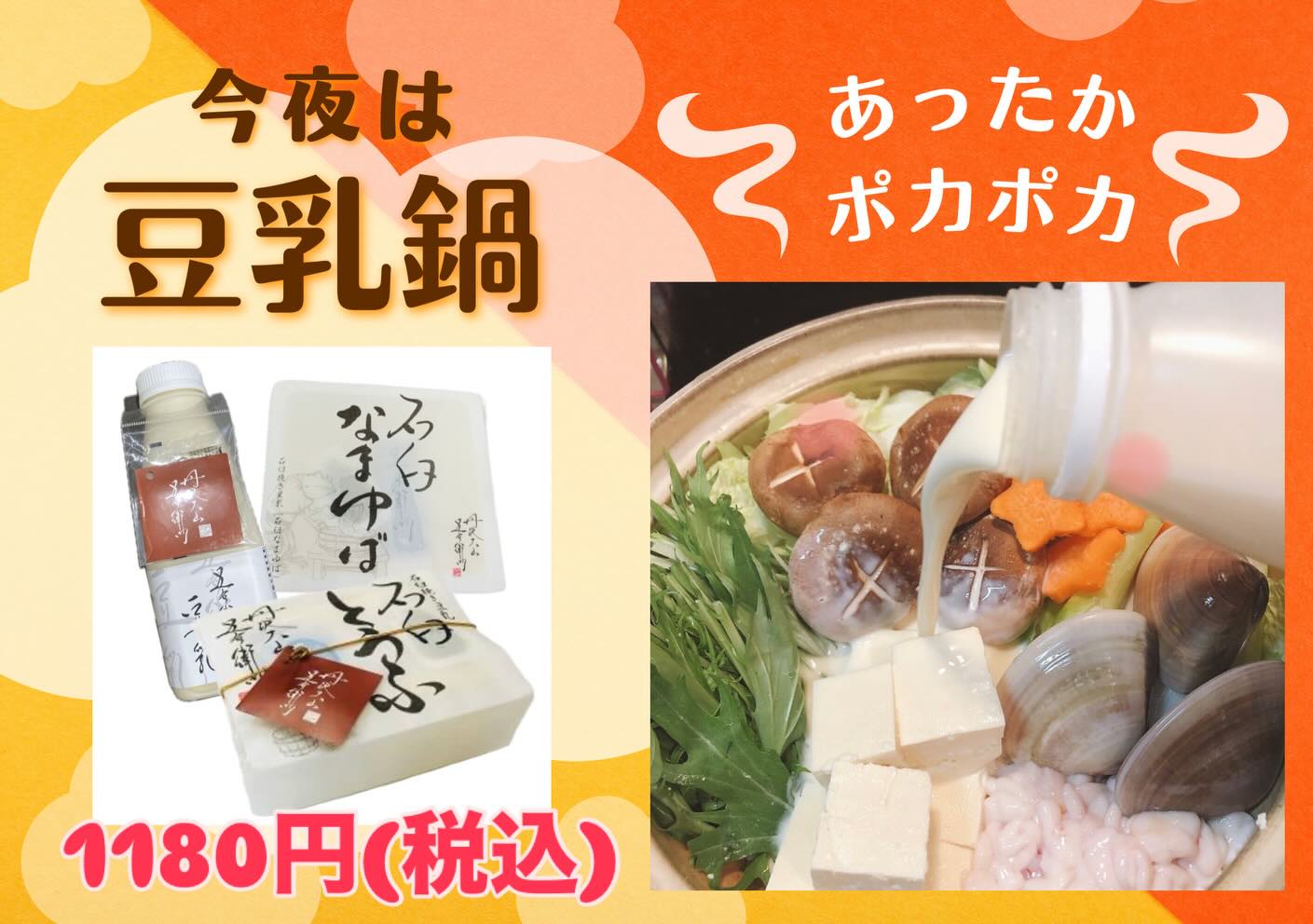 🍲豆乳鍋セット🍲 いつもご利用いただきまして、誠にありがとうございます🙇‍♀️ 今年もいよいよ大人気の 豆乳鍋セット販売中‼️ お好きなお野菜、お肉、お魚等と一緒に豆乳鍋はいかがでしょうか? これからの寒い季節にピッタリですよ⛄️❄️ 是非、一度お召し上がりください😊 🌟豆乳鍋セット     1袋 税込1,180円 ※石臼とうふ ※石臼なまゆば   ※豆乳 ※京風だししょうゆ スタッフ一同、 皆様のご来店お待ちしております🙇‍♀️ #豆乳鍋 #豆乳湯豆腐 #五右衛門豆腐 #マルイ国分寺店 #小田急町田店 #豆乳 #体にいい #なまゆば