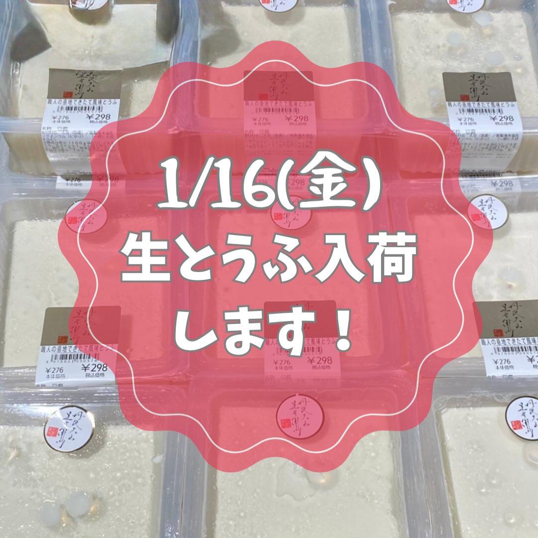 ✨入荷のお知らせ✨ 本日、「生とうふ」入荷致します! 数量限定です! そして、お正月用品の 生麩(花🌸よもぎ・あわ・紅白) 丹波黒豆 も、ご用意致しております! こちらも数に限りがございますのでお早めに❗️😊 皆さまのご来店、お待ちしております❣️ #五右衛門豆腐 #マルイ国分寺店 #小田急町田店 #生とうふ #生麩
