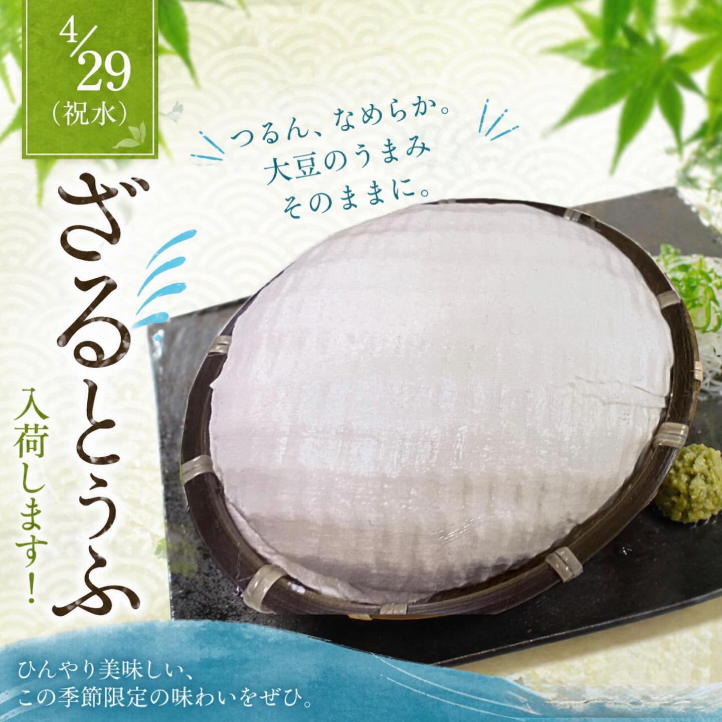 明日、ざるとうふ入荷します。 夏季限定の人気商品。 大豆の甘みと旨みがぎゅっと詰まった、 濃厚でなめらかな味わいです。 ひんやり、そのままでごちそう。 数量限定のため、 お早めにどうぞ。 皆さまのご来店お待ちしております🐸 #五右衛門豆腐 #ざるとうふ #数量限定 #小田急町田店 #マルイ国分寺店